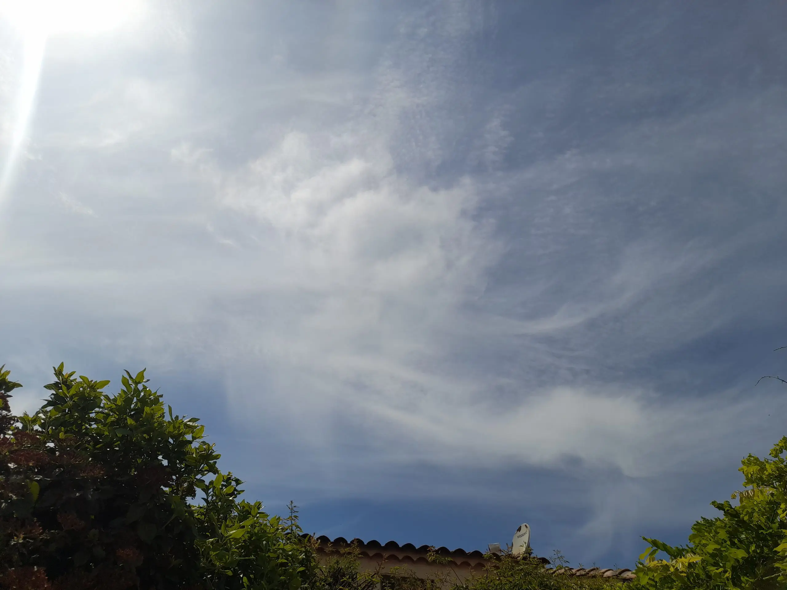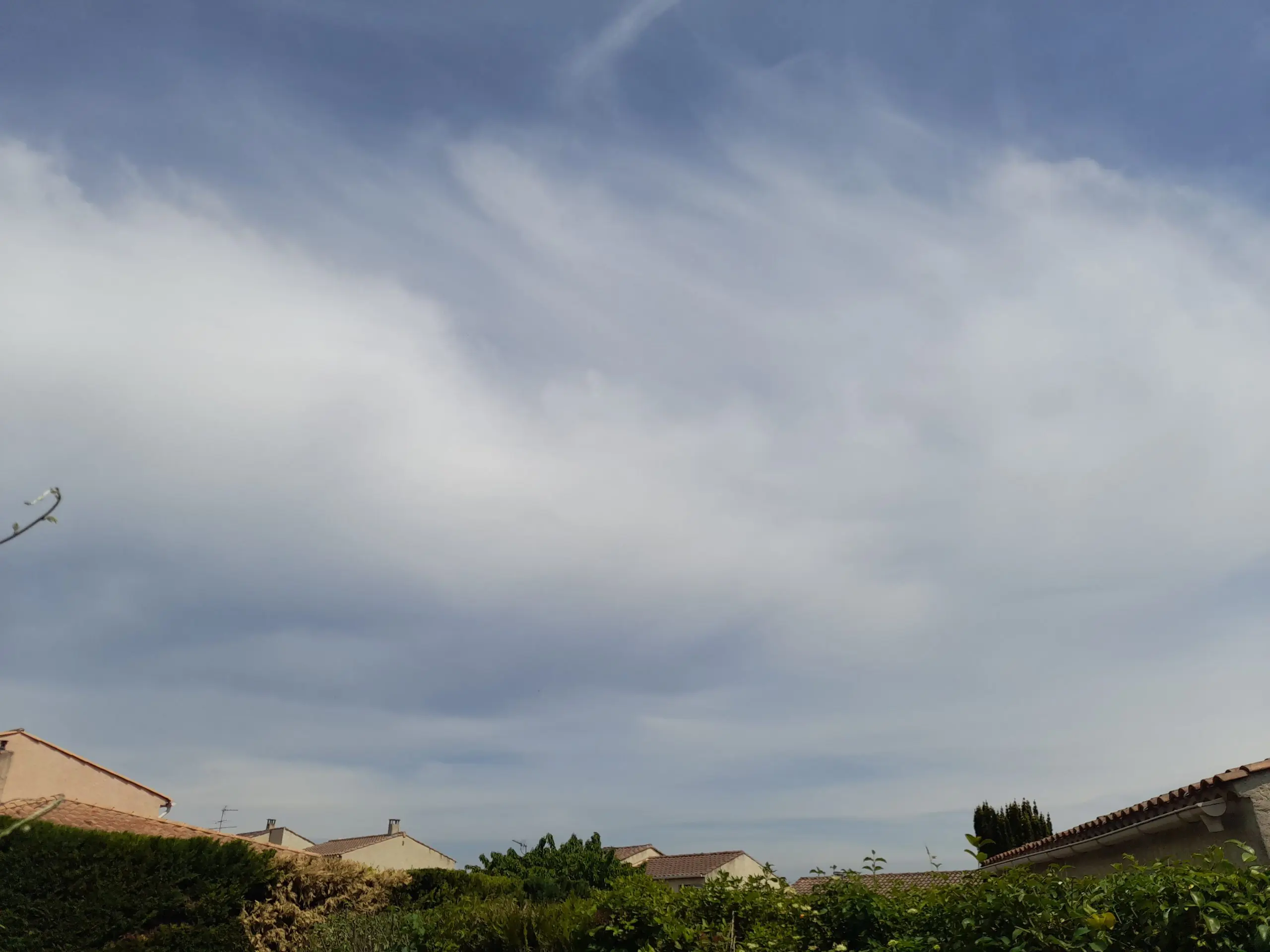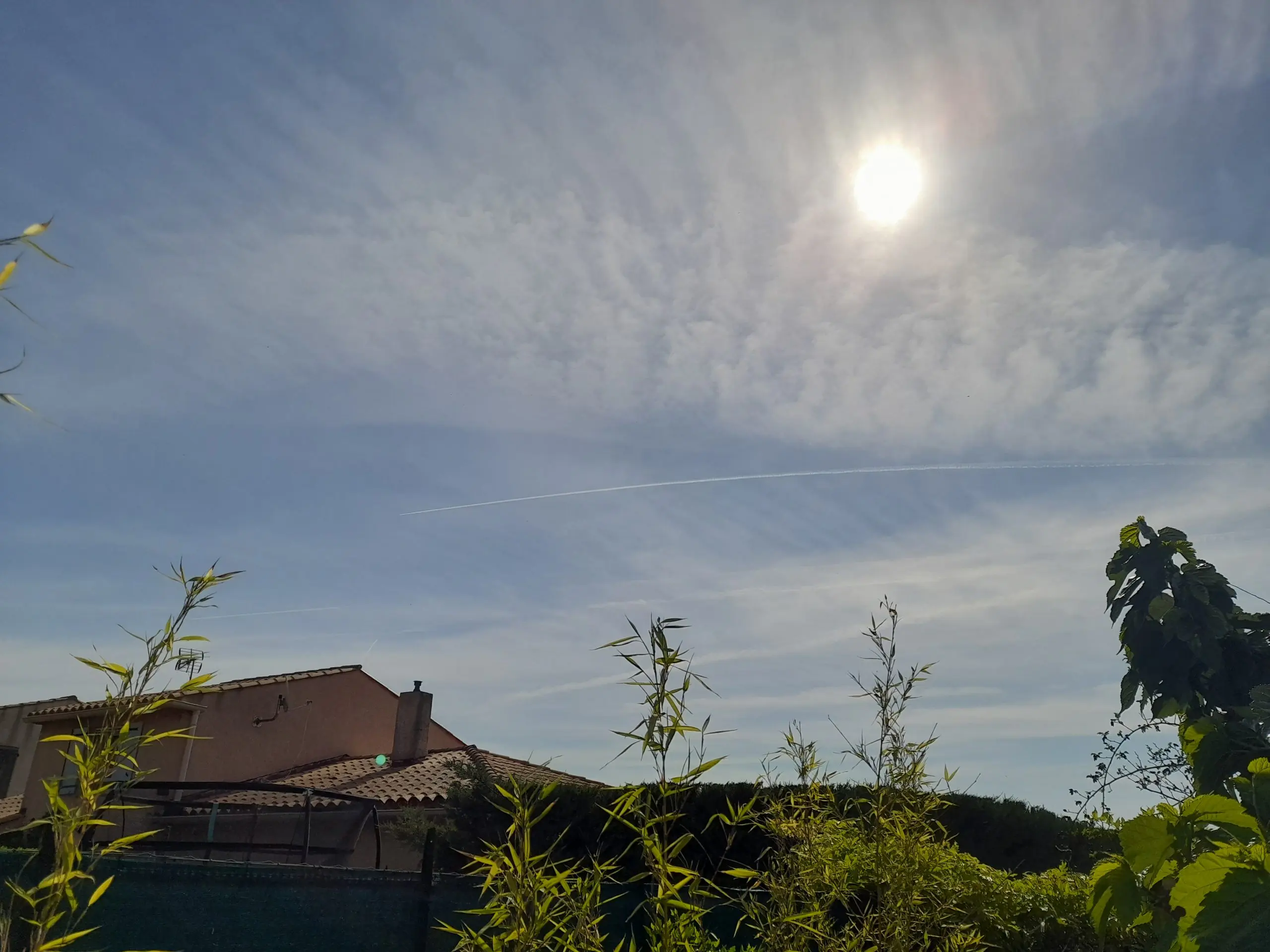 Manosque, France, April 26, 2026: chemtrails and cloudy skies.